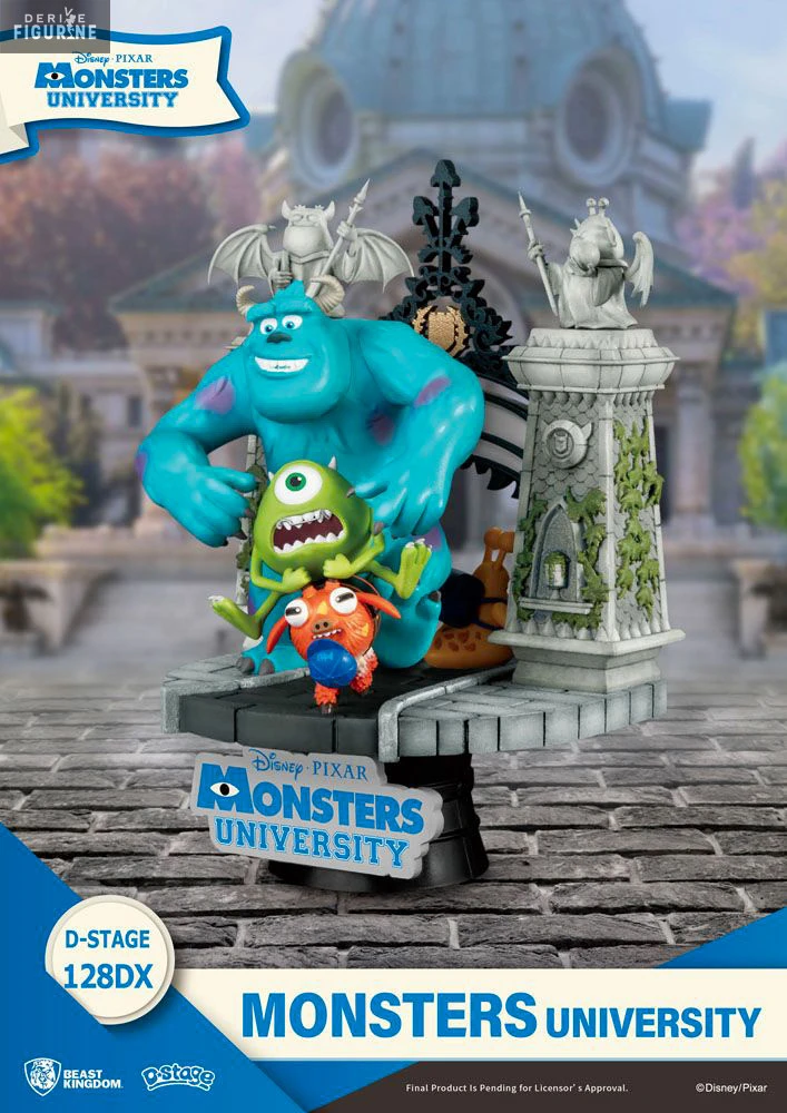 Alors qu’ils n’étaient qu’à l’université en tant que première année au programmeur de la peur de la Monstres Academy, Bob et Jacques Sullivan (Mike et Sulley en VO) faisaient déjà les 400 coups ensemble dans le Disney/Pixar Monstres Academy. Cette figurine de la gamme des D-Stage DX nous les montre tous les deux avec Archie le cochon rouge. D’ailleurs, Bob, tout comme dans le film, est à dos d’Archie. Il y a même l’étudiant limace derrière Sully.