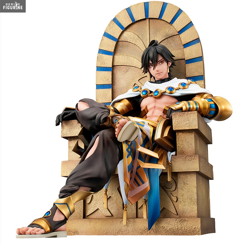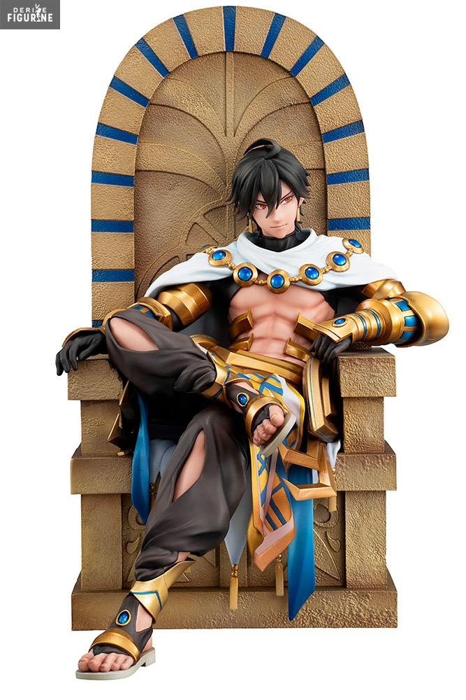 Dans Fate/Grand Order, il est possible d’obtenir le Servant du roi soleil. Ici, il est dans sa classe Rider et porte l’identité d’Ojiman Diaz alias Ozymandias. Prestigieuse et impressionnante réalisation, la figurine nous propose le jeune homme accompagné de son trône d’or. Une figurine à la fois prestigieuse et terriblement classe qui comblera tous les fans du célèbre Servant.