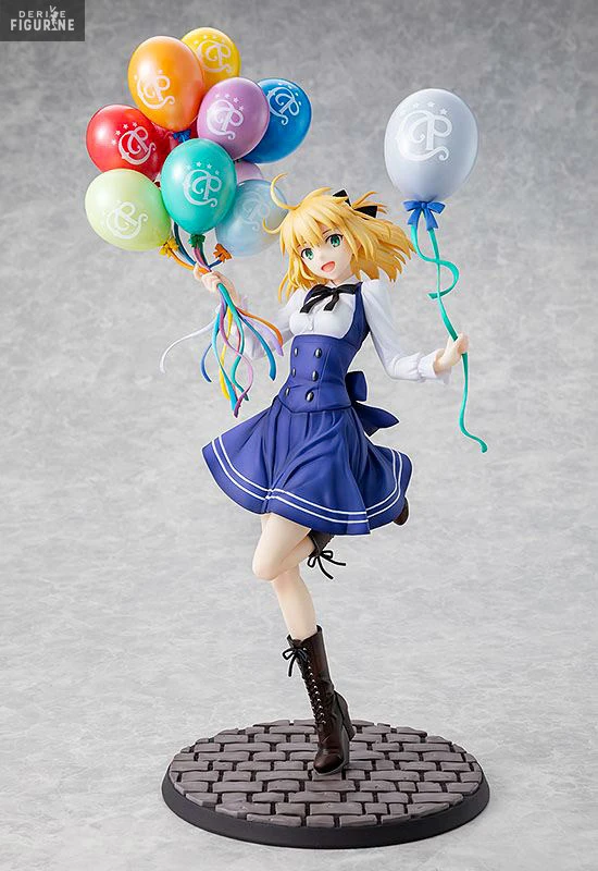 Pour le quatrième anniversaire de Fate/Grand Order, vous avez eu droit à des tenues spéciales festival. Ici, il s’agit de Altria Pendragon qui est très heureuse avec ses nombreux ballons de toutes les couleurs dans les mains. C’est une illustration que vous avez pu découvrir en 2019 au Chaldea Park.