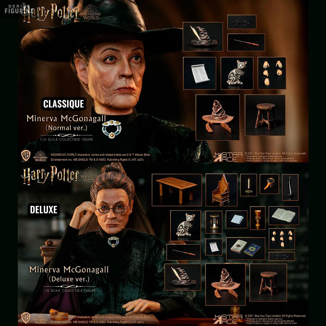 Minerva McGonagall est un peu une figure emblématique à Poudlard. Non seulement c’est elle qui est à la tête de la maison Gryffondor, mais elle est aussi professeur de métamorphose et directrice-adjointe de Poudlard. Vous allez donc pouvoir choisir si vous voulez ajouter la version Classique ou la Deluxe à votre collection, en sachant que les deux ont des vêtements en tissu, mais que la Deluxe possède en plus de nombreux accessoires.