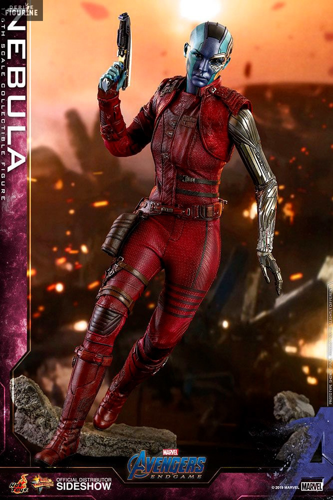 Nebula est, tout comme Gamora, la fille adoptive de Thanos. Puisqu’elle a été modifiée cybernétiquement, elle possède des capacités supérieur à un simple humain, ainsi que des armes comme un lance-flammes. Elle est vendue avec plusieurs accessoires et des parties interchangeables.