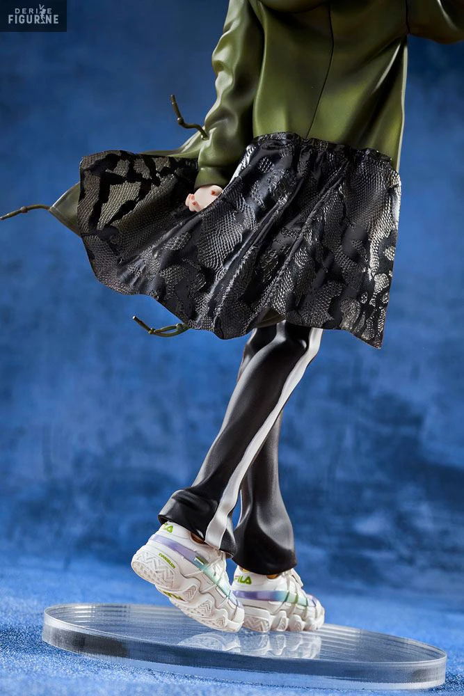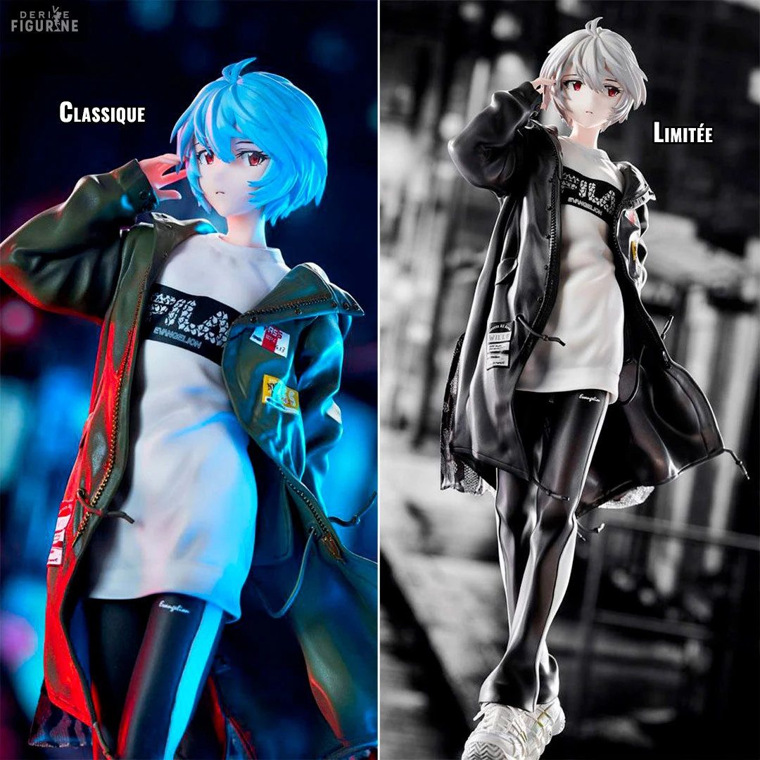 Rei Ayanami est une pilote d’Evangelion, mais pour une fois elle porte une tenue beaucoup plus détendue avec une longue veste et des baskets aux pieds. Si vous choisissez la version Classique, elle aura une tenue en couleur tandis que sur la version Limitée, vous êtes plus face à une figurine en noir et blanc.