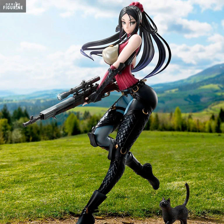 Dans Valkyria Chronicles 4, vous prenez une fois de plus part à une guerre et pour cela, il faut plusieurs types d’armée et vous êtes ici face à la belle Kai Schulen. Comme vous vous en doutez en voyant l’arme qu’elle tient en main, elle est de la classe sniper de l’armée d’Edinburgh. Elle est vraiment jolie et on peut aussi voir un petit chat noir et des douilles au sol.