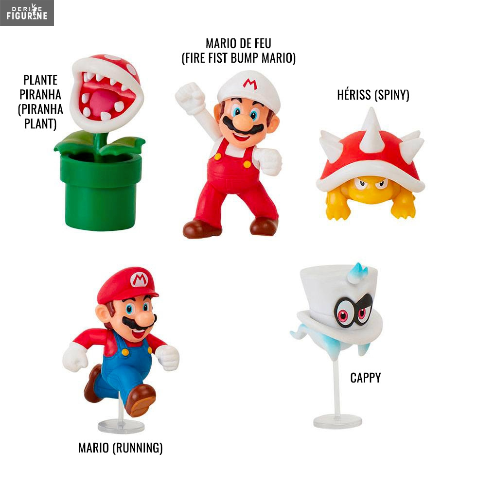 La série 19 des figurines World of Nintendo vous proposent plusieurs réalisations avec au choix, Mario qui est en train de courir, Mario dans sa transformation où il tire des boules de feu, la dangereuse plante piranha, Cappy dans son forme fantomatique et enfin, un ennemi qui pique le joueur dans les jeux lorsqu’il est lâche par un Lakitu, il s’agit d’Hériss alias Spiny en VO !